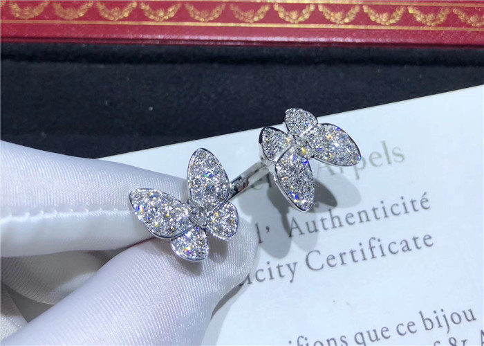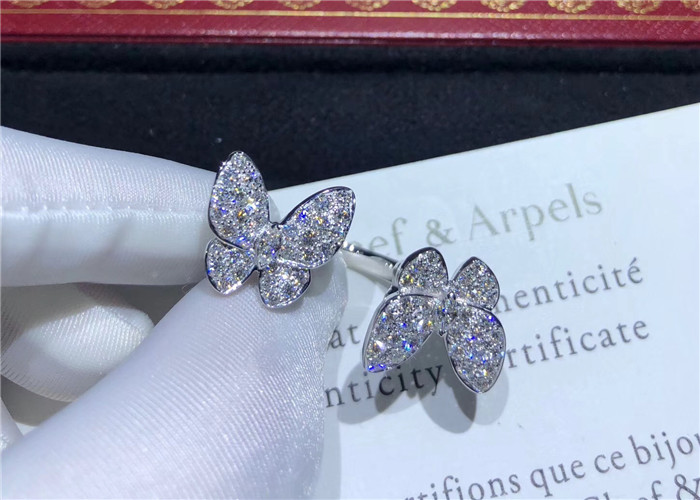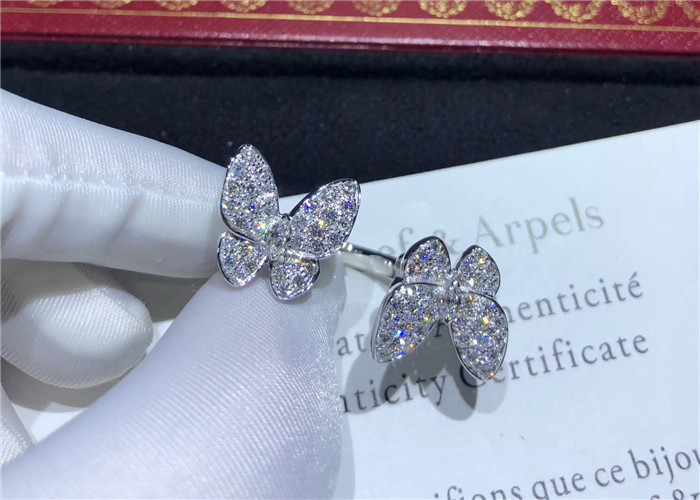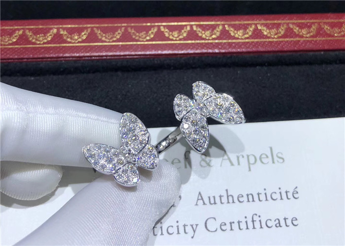 الذهب الأبيض 18 كارت فان كليف & أربلز اثنين فراشة خاتم الماس خاتم الذهب البسيط مع الماس