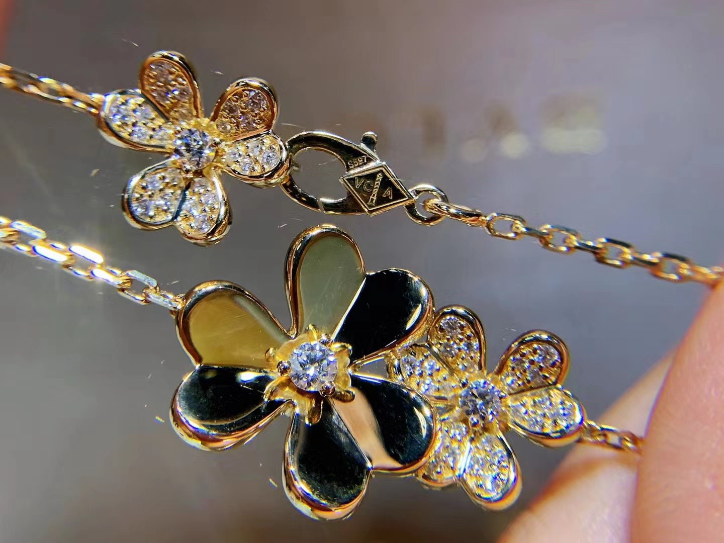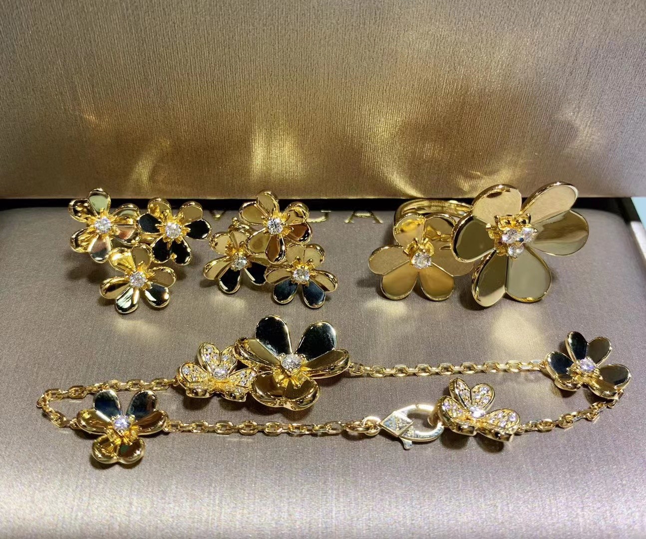مثل العديد من الزهور التي ترقص في الرياح، تبرز إبداعات "فريفول" من "فان كليف" و"آربل" بجسدها الجرافيكي والهوائي.يمنح الذهب الملمع المرآة إشراقاً مميزاً لزهورها على شكل قلب.