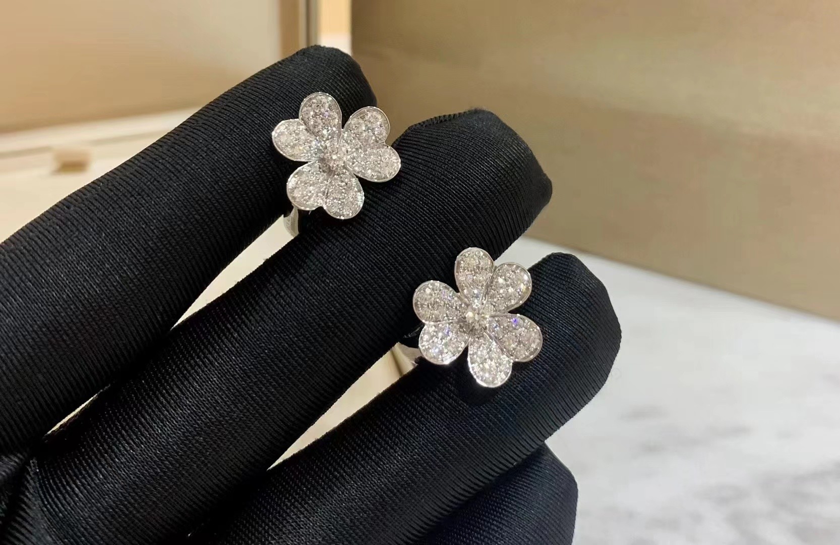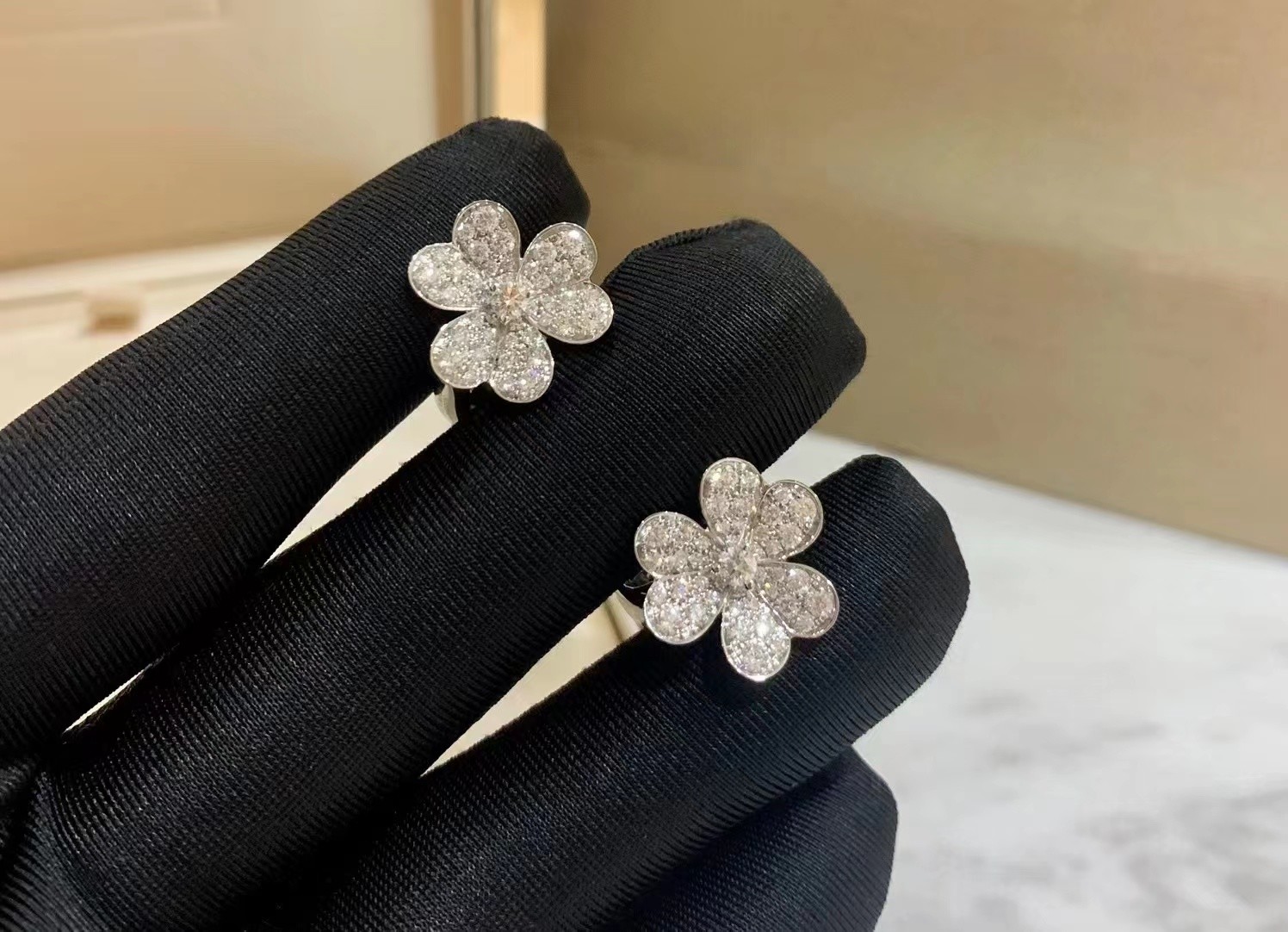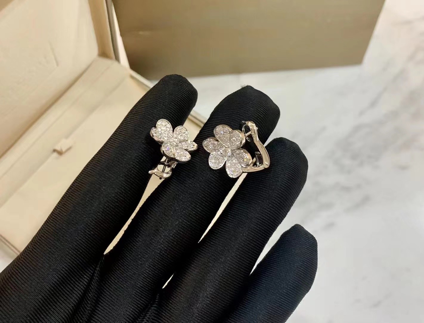 إبراز: | 18 كارت ذهب أبيض كوزموس قرط الماس,18 كيلو فان كليف و أربيلز الأقراط,18K Custom Brand Earrings |
