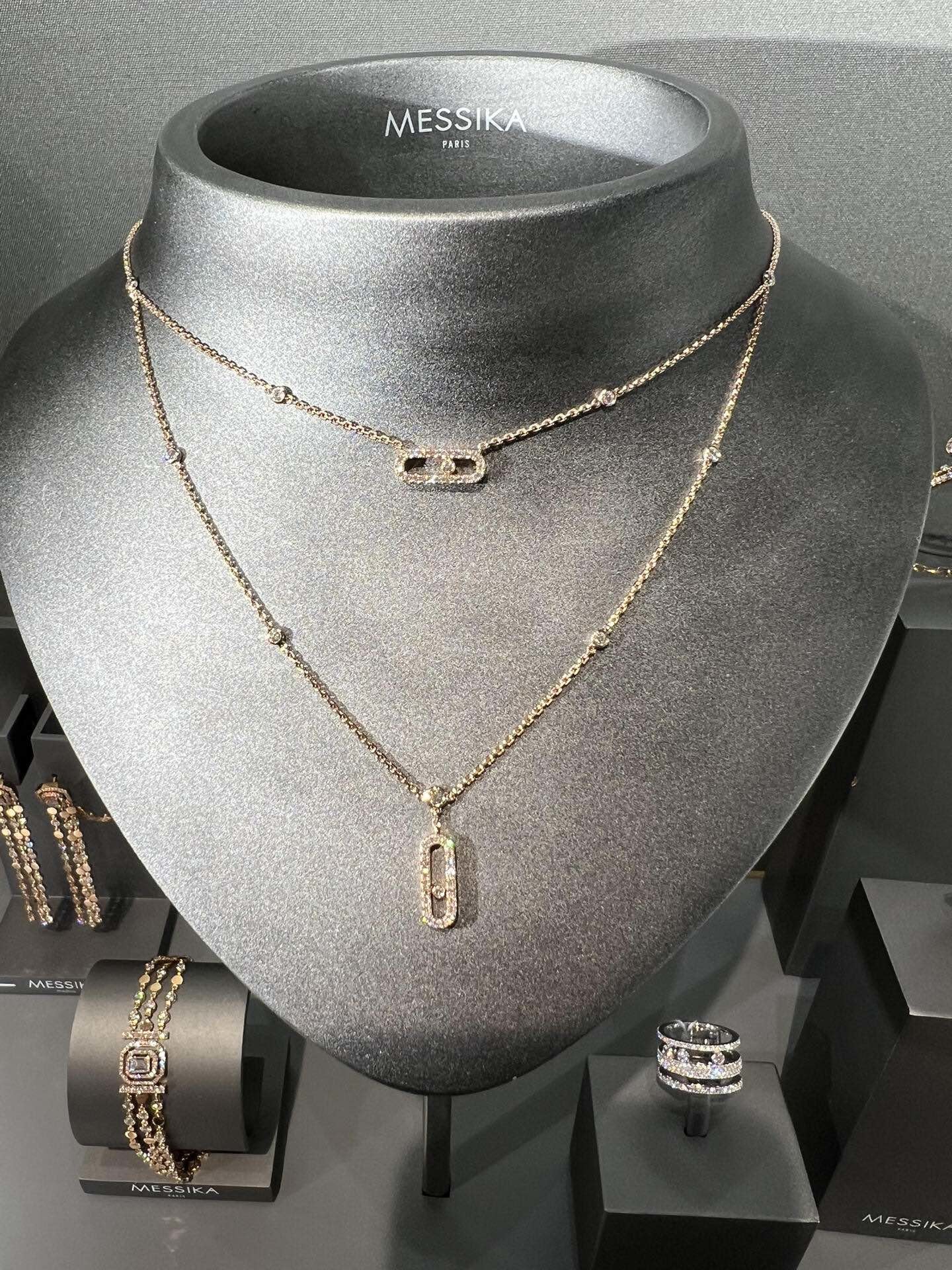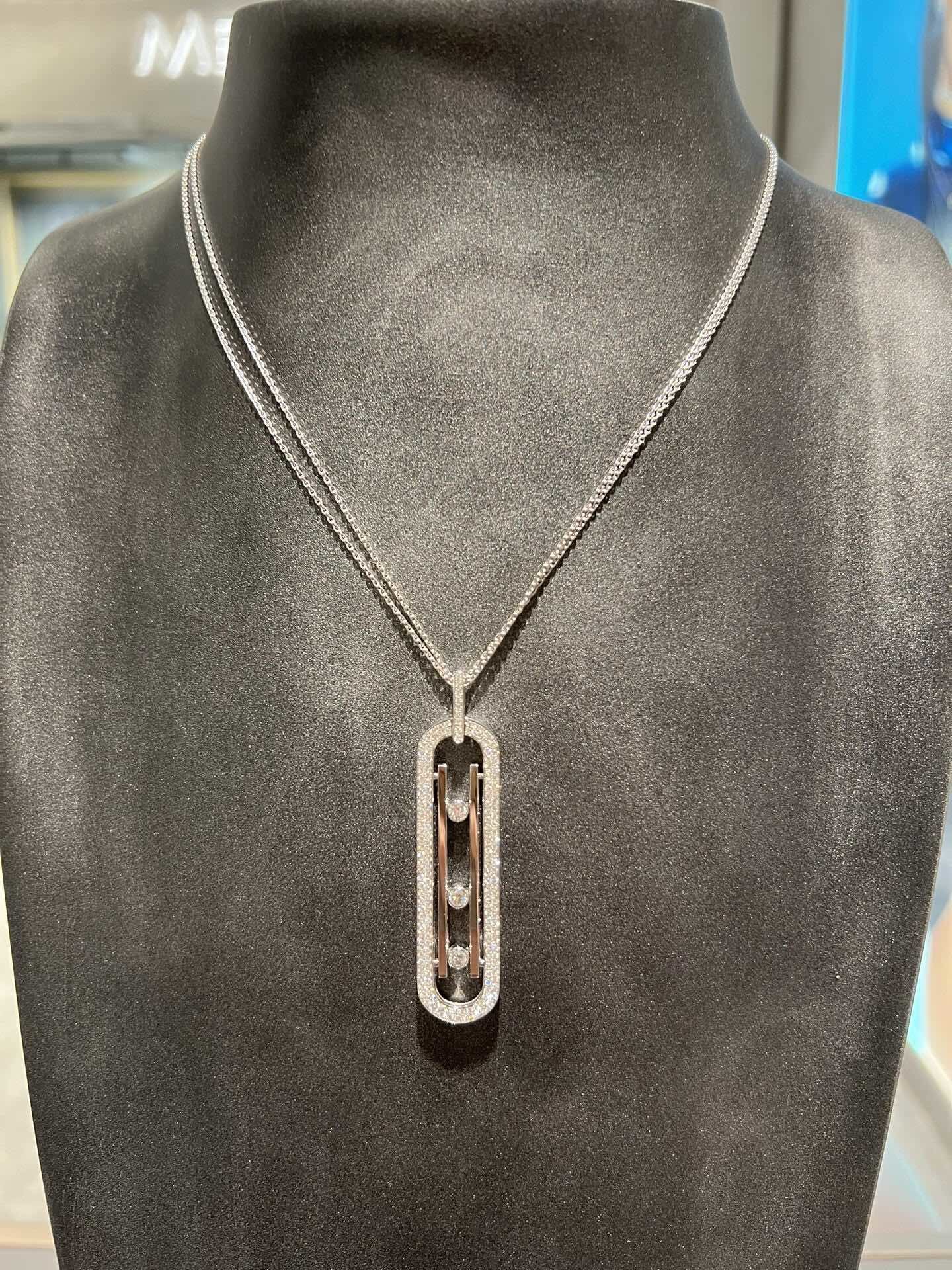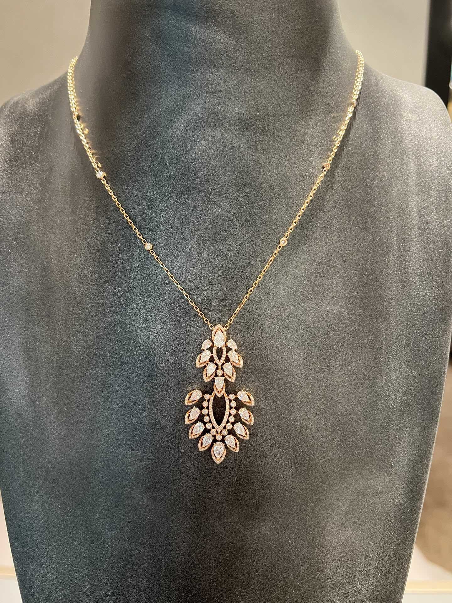 مع مزيج من الذهب 18 كارت والماس، هذا القلادة هي قطعة بيان حقيقية.سواء كنت تلبس أو تبقيه عاديكما أنها تجعل هدية مدروسة و فاخرة لشخص مميز